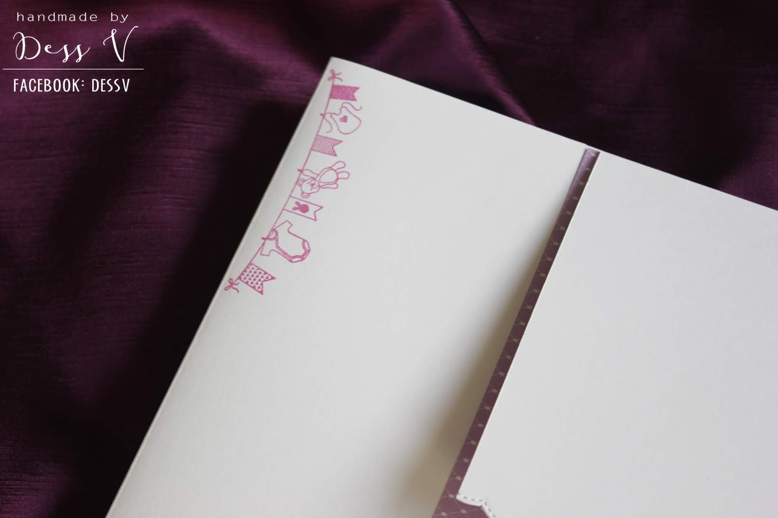 Албумът на Виктория е в комбинация от лилаво и жълто. Декориран с дизайнерски хартии, печати и изрязани елементи. В него има множество разгъващи се страници, елементи, джобове и тагове за побиране на повече спомени и снимки.