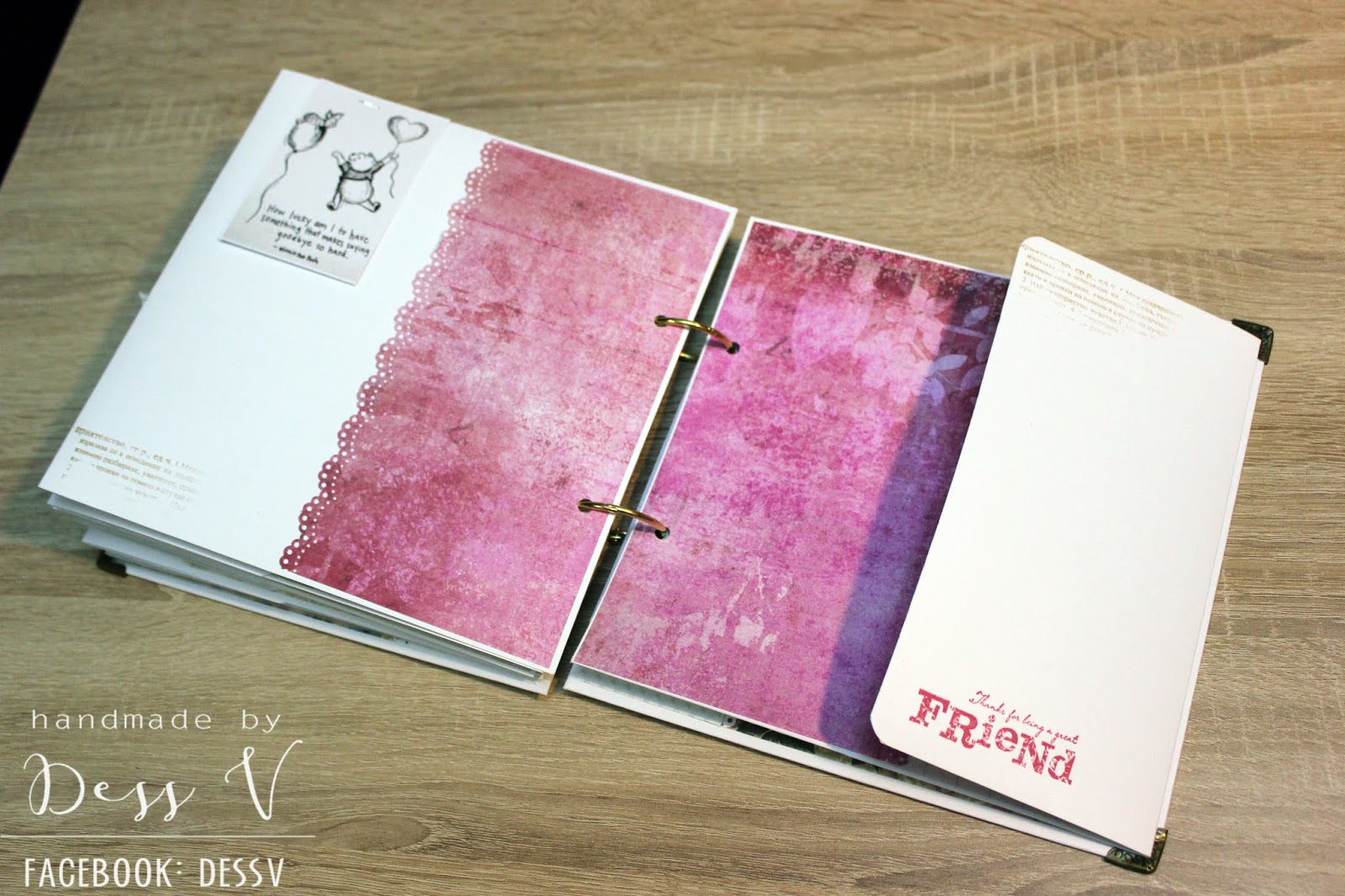 Приятелството е истинско и безценно, когато се запази, макар и разделено от два различни континента. Това ни доказва албумчето, поръчано от едно мило момиче за нейната най-добра приятелка, която замина надалеч. Корицата е изцяло ръчно направена, посредством дизайнерски печати, специална златна пудра и мастила. Вътре поместихме подбрани фрази и цитати, както и лично послание от поръчителката. Размери: 20 х 20 см, 20 страници.